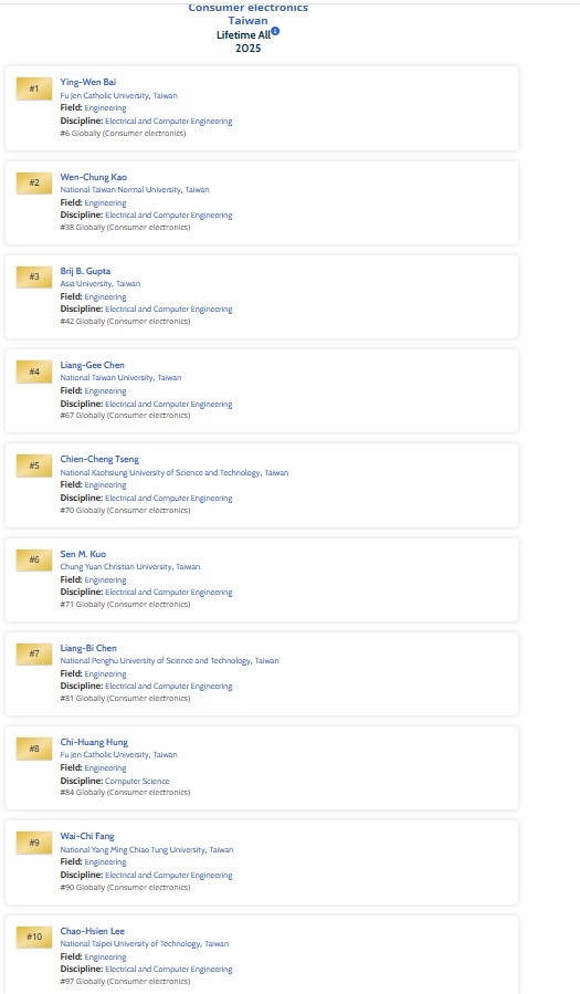 陳良弼主任此次同時榮獲2025年Top 0.5%「終身頂尖學者」(Top Scholar - Lifetime)及「近5年研究頂尖學者」(Top Scholar – Prior 5 Years)雙榜殊榮,充分展現其長期於學術研究上的深耕與貢獻,也為本校提升國際影響力。